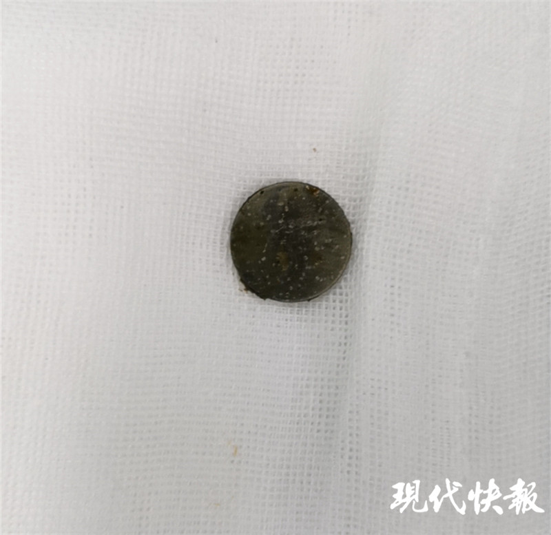 完善手術準備,醫(yī)生通過腹腔鏡將電池取出。“這個手術本身比較困難,因為這個電池非常薄,直徑只有1厘米左右,小腸非常長,我們用了很長時間才找到這個電池,電池附近的腸道黏膜已經發(fā)黑,形成了化學性的腐蝕,如果時間再長一點可能造成穿孔等一些非常嚴重的后果。”顧春暉說。