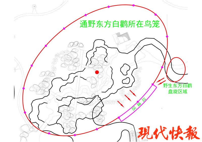第一步,在1號鳥園的旁邊單獨建立一個有網(wǎng)的生活區(qū)間,通過定點喂食的方式,讓野生東方白鸛慢慢走進“愛的過渡區(qū)”(該生活區(qū)為“愛的過渡區(qū)”);