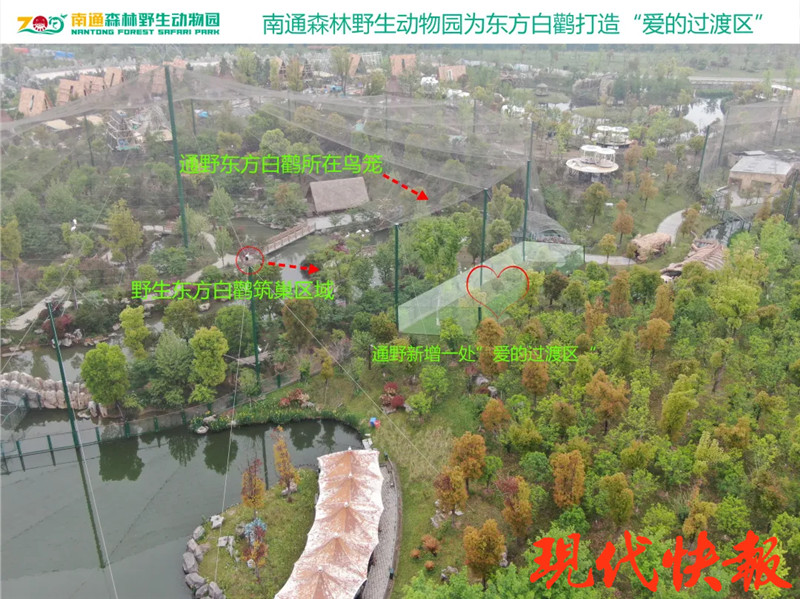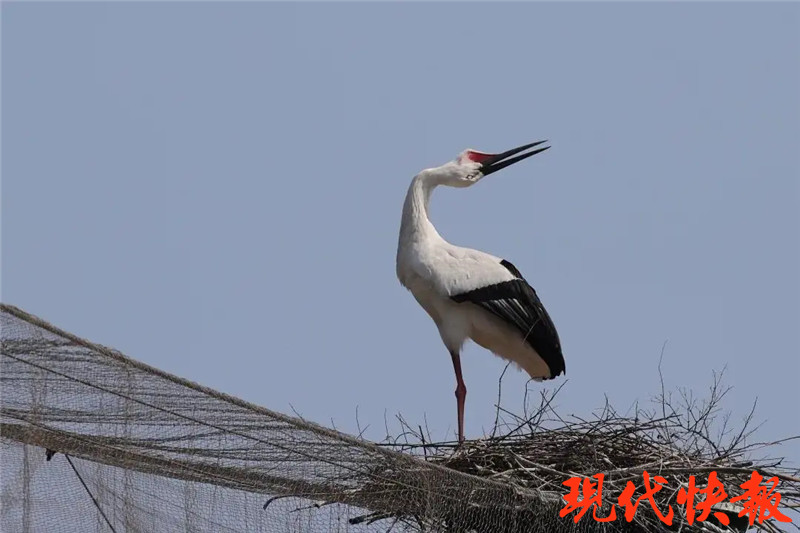 東方白鸛屬于大型涉禽,是國家一級保護動物。2009年,全世界東方白鸛野生種群記錄不到3000只,屬于瀕危鳥類。3月8日,現(xiàn)代快報曾報道,一只東方白鸛在遷徙途中,被南通森林野生動物園內(nèi)的同族群吸引,自己在鳥籠頂部筑巢安家,天天與另一半“隔籠相望”。