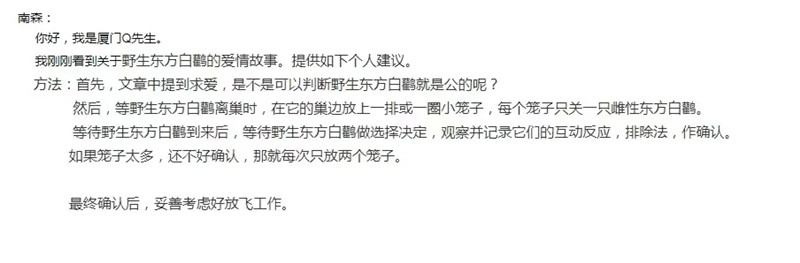 (注:以上方式均在確保東方白鸛健康無誤的情況下采取行動。)