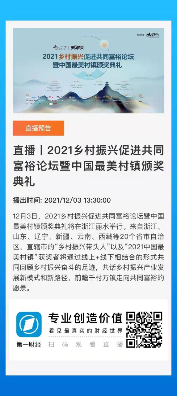 創(chuàng)建最美村鎮(zhèn)典范,擘畫(huà)共同富裕愿景。12月3日13時(shí)至17時(shí),期待您的參與和關(guān)注。