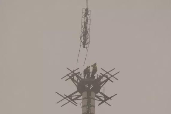 工程師在法國巴黎埃菲爾鐵塔的塔頂安裝了一根新的通信天線后,鐵塔又長高了近20英尺(6米)。