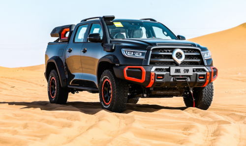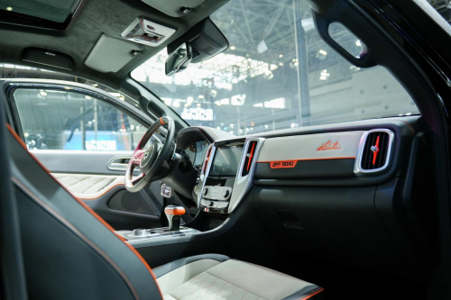 黑彈是長(zhǎng)城炮聯(lián)合運(yùn)良越野,共同打造的個(gè)性化共創(chuàng)改裝車型,整車無(wú)處不散發(fā)出獨(dú)特的野性魅力,成為春天里的一道亮麗風(fēng)景線。在外觀方面,黑彈采用全黑車身與亮橙點(diǎn)綴的配色方案,完美詮釋“低調(diào)不平庸,高調(diào)不張揚(yáng)”的設(shè)計(jì)理念,配合機(jī)蓋與中網(wǎng)讓車頭呈現(xiàn)出粗獷兇悍的視覺神態(tài),整體充滿力量感和強(qiáng)大氣場(chǎng)。