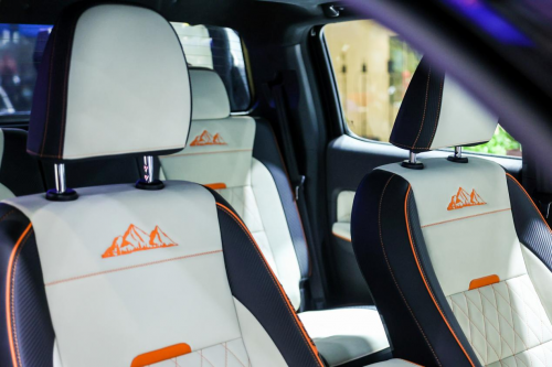 寬體輪眉的加入,堪稱點(diǎn)睛之筆,增強(qiáng)了整體的視覺寬度,讓比例更協(xié)調(diào)。加寬的輪距帶來(lái)了更大的懸掛行程以及更佳的橫向穩(wěn)定性。輪轂部分同樣有亮橙點(diǎn)綴,呼應(yīng)整體的設(shè)計(jì)風(fēng)格,更具活力。