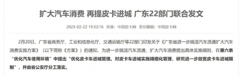 同時(shí),皮卡政策利好消息頻傳。此前,廣東省22部門印發(fā)關(guān)于《廣東省進(jìn)一步搞活汽車流通擴(kuò)大汽車消費(fèi)實(shí)施方案》的通知,提出“優(yōu)化皮卡車進(jìn)城管理。對(duì)皮卡車進(jìn)城實(shí)施精細(xì)化管理,研究進(jìn)一步放寬皮卡車進(jìn)城限制”。福建省漳州市商務(wù)局發(fā)布《2023年汽車促消費(fèi)活動(dòng)公告》,開展對(duì)汽車消費(fèi)為期一月的現(xiàn)金補(bǔ)貼,皮卡車型在列。