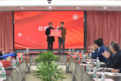 隨后舉行捐贈儀式,深圳東方龍大通信有限公司創(chuàng)始人、信號36班校友周平稻先生現(xiàn)場捐贈助學(xué)資金,段俊毅院長代表通信信號學(xué)院受贈,并舉行實(shí)驗(yàn)室共建揭牌儀式。