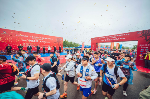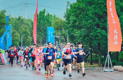 8:58,伴隨洪亮的發(fā)令汽笛聲正式開跑,天空飄落零星小雨并沒影響到500名參賽者激情,從起點(diǎn)賈汪旅游發(fā)展中心出發(fā),經(jīng)鳳鳴海、大洞山、督公湖等景區(qū),沿途品鑒吉尼斯世界紀(jì)錄鳳鳴石、攀登海拔361米彭城第一高峰大洞山、奔跑千年茱萸古寺前、穿行萬畝石榴園間、探尋運(yùn)動(dòng)勝地督公湖,最終抵達(dá)終點(diǎn)沖線。