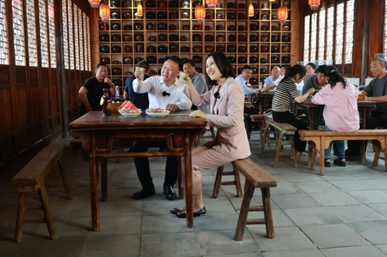 直播活動中,縣長蘇衛(wèi)哲和主持人向廣大網(wǎng)友介紹了湯溝的“香泉井”、“天啟酒窖”、湯溝釀酒基地的手工班窖池群,讓網(wǎng)友們深度了解湯溝酒的歷史沿革、文化底蘊和釀造工藝。