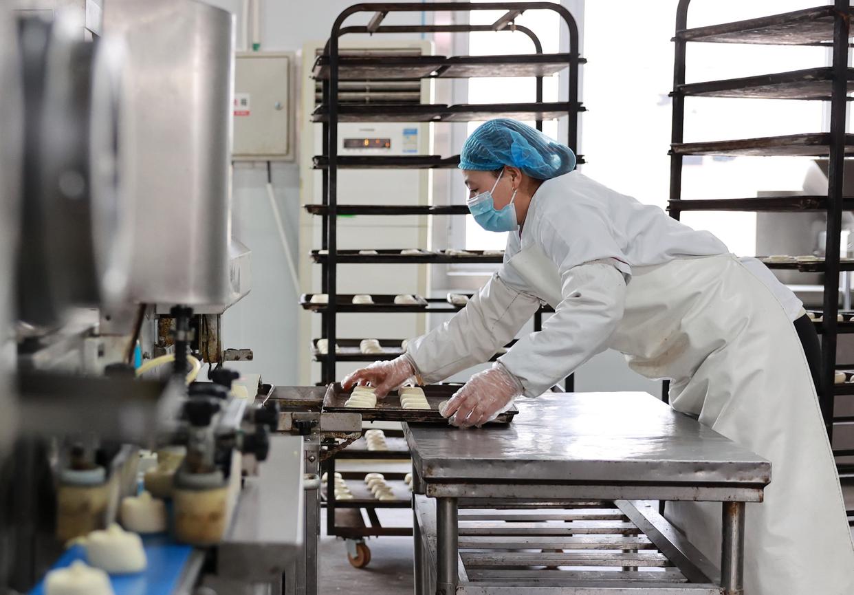 2月3日,河北省唐山市豐南區(qū)一家食品加工企業(yè)的工人在糕點烘焙車間工作。新華社記者 楊世堯 攝