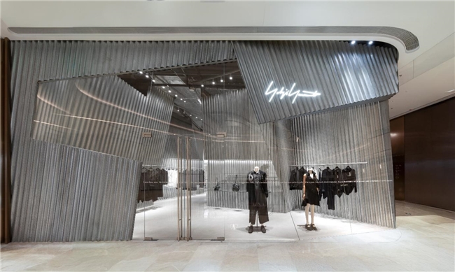 落成的空間,是山本耀司標(biāo)志性暗黑哲學(xué)與南京建筑剛毅風(fēng)骨的深度對話。冰冷金屬的現(xiàn)代感與手工鍛造的細微痕跡交織,營造出前衛(wèi)而富有溫度的氛圍。層疊的波紋仿佛凝固了時光長河,讓六百年的城墻魂魄在當(dāng)代空間中磅礴新生。這不僅是店鋪空間,更是一座承載城市記憶、凝聚設(shè)計精神的現(xiàn)代美學(xué)載體。