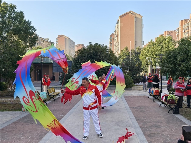 活動(dòng)現(xiàn)場(chǎng),志愿者們以自編自演的節(jié)目點(diǎn)燃了冬日熱情。開場(chǎng)《歌唱祖國》點(diǎn)燃全場(chǎng),隨后,八段錦健身操的表演者們動(dòng)作舒緩流暢,一招一式盡顯傳統(tǒng)養(yǎng)生功法的魅力;抖空竹的志愿者們技藝嫻熟,空竹在空中上下翻飛,發(fā)出清脆悅耳的聲響,引得孩子們紛紛圍觀驚嘆。詩朗誦《志愿者》以真摯情感傳遞了志愿者服務(wù)社區(qū)的初心,聲情并茂的朗誦讓現(xiàn)場(chǎng)觀眾深受觸動(dòng)。而壓軸的群舞《美麗中國》則以優(yōu)美的舞姿勾勒出家國情懷,舞者們身著鮮艷的服裝,用靈動(dòng)的身軀詮釋著對(duì)祖國的熱愛,贏得觀眾陣陣掌聲。