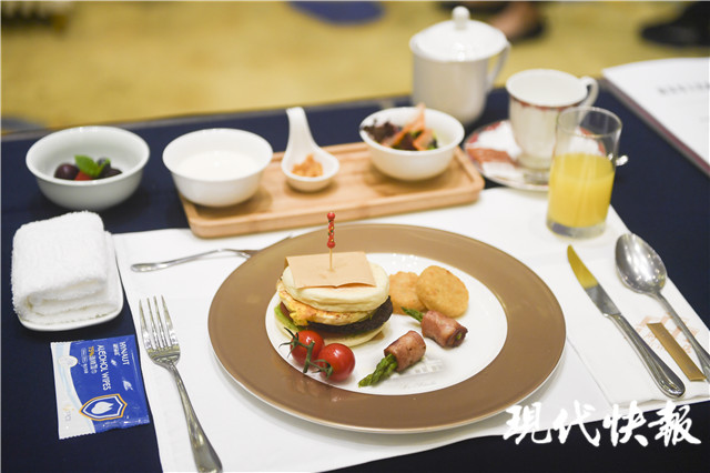 現(xiàn)代快報記者在早餐會上注意到,與前三場早餐會主食鴨血粉絲、皮肚面、餛飩不同,考慮到邀請企業(yè)家均來自外資外貿(mào)領(lǐng)域,此次早餐會主食選擇了精致的牛肉漢堡,配食有咖啡、小菜、水果等。