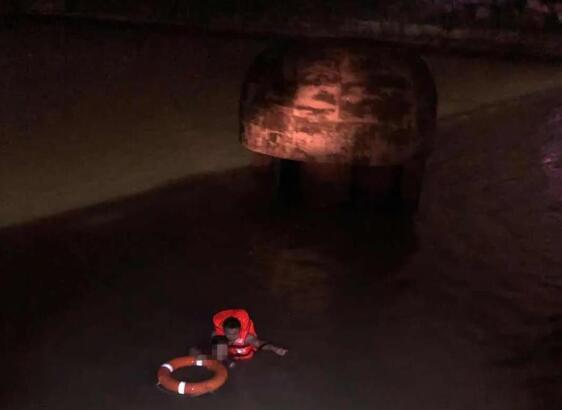 晚上 8 點(diǎn) 13 分,正在值班的灌南公安局新安派出所民警于小慶接到指令后,立即和民警杜明才一起帶著救生圈和救生衣開車奔赴現(xiàn)場。8 點(diǎn) 18 分,到達(dá)現(xiàn)場的于小慶通過燈光看到了落水者,此時(shí),老人正在奮力踩水,只有面部還露在水面上。離老人四五米遠(yuǎn)的地方,就是防撞橋墩,于小慶立即安排人喊話,讓老人想辦法靠近這個(gè)橋墩,可以扶著橋墩休息會(huì)兒,同時(shí),他穿著游泳衣快速朝著橋下跑了過去,到了河邊,他直接從兩米來高的地方跳進(jìn)了河里,奮力朝著落水者的方向游了過去。