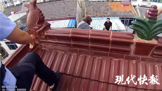 由于擔(dān)心女孩的安全,民警兵分兩路,有人在前方負(fù)責(zé)吸引女孩注意力,有人繞過女孩的視線從屋頂背后爬了上來。據(jù)出警民警韓慶邦介紹,由于擔(dān)心刺激女孩,他們接近的速度并不快。直到發(fā)現(xiàn)女孩對(duì)他們的接近沒有太大反應(yīng)后,他們加快速度想盡快控制女孩。此時(shí)吳俊慢慢靠近女孩,一把抱住了女孩,但由于瓦片太滑,吳俊和女孩都倒在了屋頂上,幸虧吳俊及時(shí)穩(wěn)住了身體,兩人才沒有滑下去。