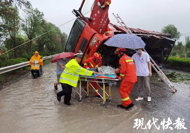 貨車(chē)側(cè)翻壓住面包車(chē) 3人受傷