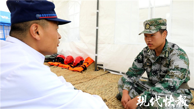 傷口處理好,兩人閑聊起來。黃保平得知,丁好雖然才21歲,但履歷卻很豐富,2014年他初中畢業(yè)后,就讀于江蘇省交通技師學(xué)院汽車維修專業(yè),2017年,懷著一個軍營夢,他休學(xué)入伍,在上海武警部隊服役,2019年退伍后繼續(xù)返回學(xué)校完成學(xué)業(yè)。而正值暑假期間,得知江心洲防汛形勢嚴(yán)峻,他又主動報名了當(dāng)?shù)厝宋洳拷M織的民兵,加入了防汛工作。