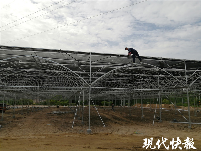 △育新村內(nèi)新建的萬平連棟大棚項目