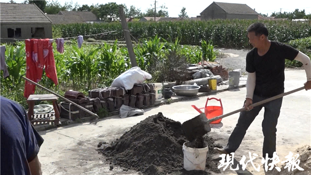 小莉的家在射陽縣藕耕辦事處麒麟村。7月26日上午,現(xiàn)代快報記者在小莉家看到,志愿者購買的水泥、砂石和地板磚等物品堆放在門前場地上,一名在鋪地板的師傅和志愿者正在攪拌水泥,成捆的塑料扣板堆放在房屋內(nèi),房間的防盜門安裝完畢,一排嶄新的衣柜已靠墻擺放。