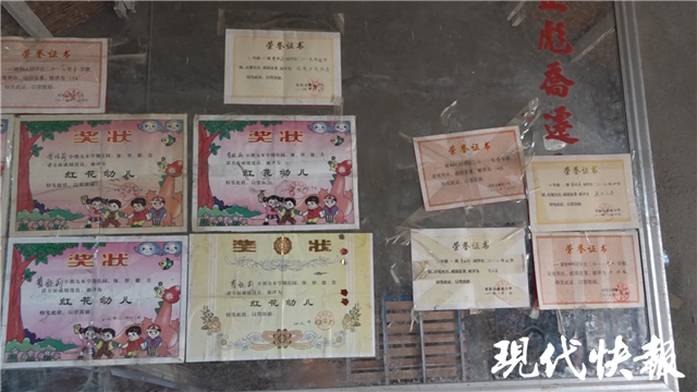 在堂屋墻壁上,貼滿了小莉多年來獲得的獎狀,奶奶在一旁清掃地面,為鋪地板做準(zhǔn)備。