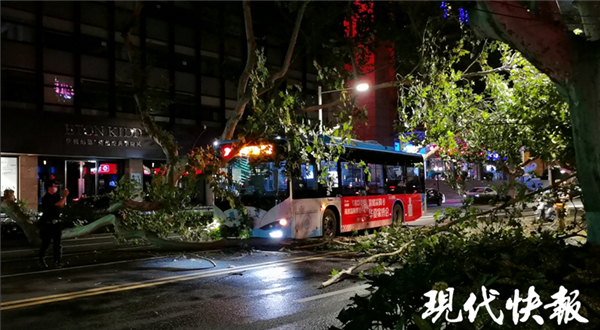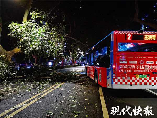 南京鬧市區(qū)一法桐樹干斷裂 砸中公交車