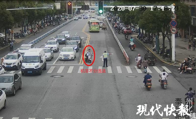 7月30日下午5時(shí)30分,唐某騎著一輛電動(dòng)自行車,在機(jī)動(dòng)車道內(nèi)行駛,執(zhí)勤民警隨即上前將其攔下,并讓他將車子靠邊依法接受處理。