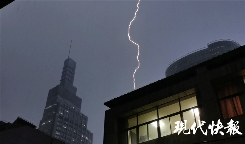 △昨天晚高峰時,南京出現(xiàn)強(qiáng)對流天氣,電閃雷鳴