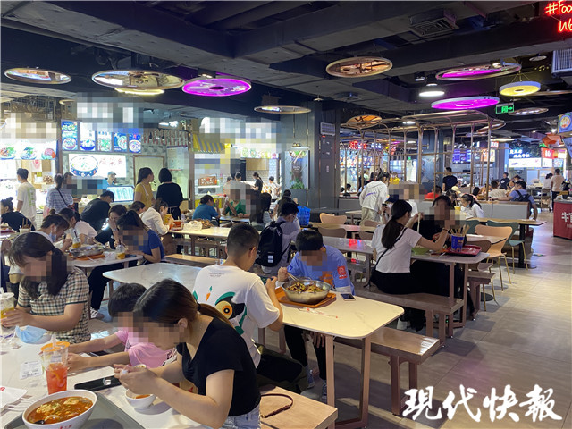 8月11日下午2點(diǎn),盡管已過飯點(diǎn),但萊迪廣場(chǎng)地下一層美食城依舊客滿。麻辣香鍋、鴨血粉絲、涼皮涼面、炒飯蓋飯,這里有各地美食供食客選擇。上一桌客人剛剛離開,保潔員胡大姐走到桌旁,快速收拾起餐盤。這一桌客人沒有留下剩飯剩菜,她收拾起來很方便。“來這邊吃飯的人基本只點(diǎn)一兩樣,剩菜不會(huì)太多。”