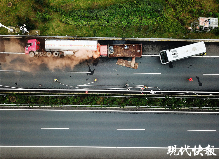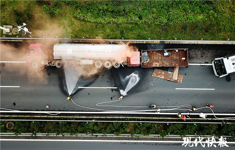 8月11日,由江蘇省公安廳、江蘇省交通運(yùn)輸廳、江蘇交通控股有限公司聯(lián)合主辦的2020年高速公路省際聯(lián)動(dòng)應(yīng)急預(yù)案演練,在S49新?lián)P高速揚(yáng)州段開演。應(yīng)用無(wú)人機(jī)、信息監(jiān)管平臺(tái)查詢,再加上江蘇高速“智慧大腦”指揮,1小時(shí)左右就將這個(gè)“危險(xiǎn)事故”化于無(wú)形。