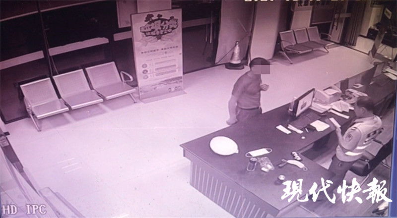 △男子前往卡口大隊大廳“偵查”