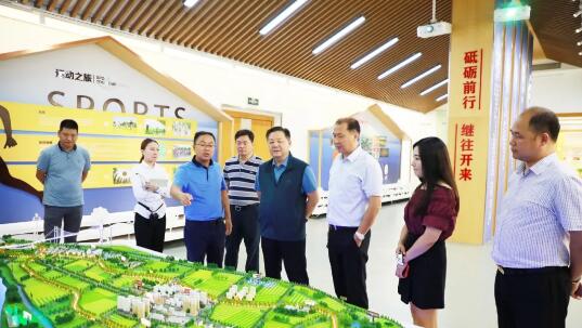 艾會長一行在世業(yè)鎮(zhèn)旅發(fā)副總虞亞軍陪同下,參觀鎮(zhèn)服務(wù)中心。在中心展館,艾會長一行詳細觀看了世業(yè)洲建設(shè)規(guī)劃全景沙盤。在觀看黨建展廳時,艾會長駐足良久,對“一村一品”特色黨建工作深深贊許。