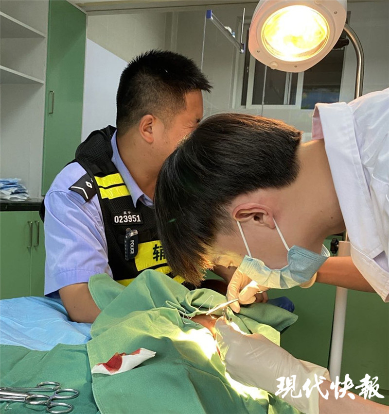 就在大家為徐先生慶幸的時候,同事張奇發(fā)現(xiàn)孔鳴的手指有鮮血流出。附近的醫(yī)務人員趕緊幫忙救治,由于傷口較深,建議去醫(yī)院做進一步處理。“當時只想著趕緊救人,時間就是生命。”因為情況緊急,孔鳴在掰斷車窗玻璃被劃傷時沒任何感覺,手指流血了還不知道,去醫(yī)院后縫了3針才止住。