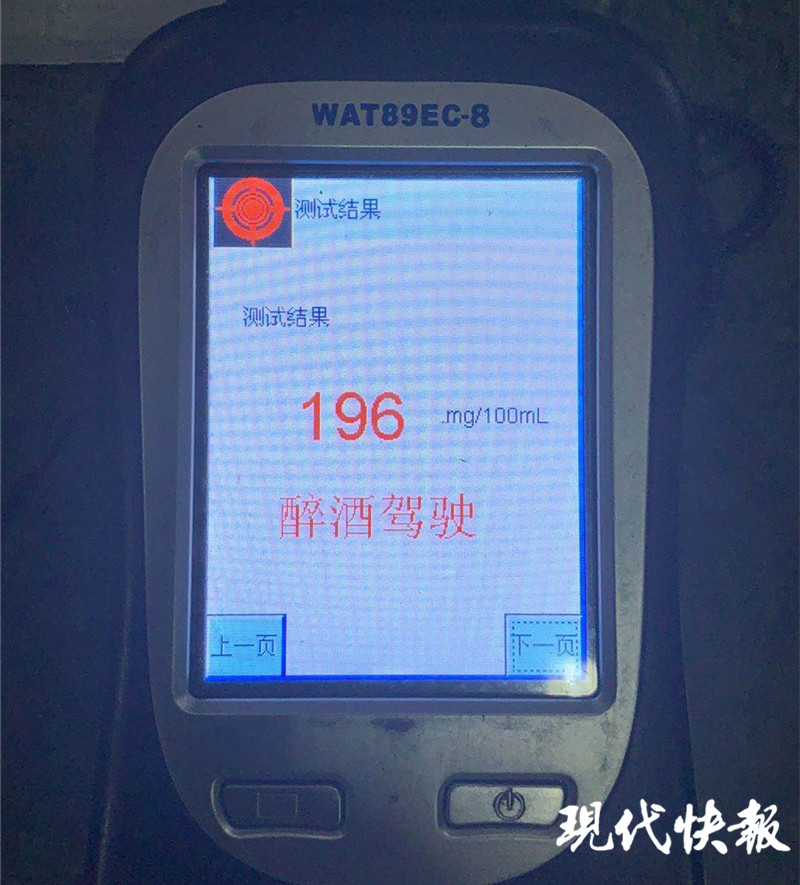 警車上,該駕駛員借口有事突然打開車門再次逃跑,立刻被民警緊緊抓住,并將其送至城北派出所。經(jīng)查,駕駛?cè)诵沼龋凭魵鈾z測為196mg/100ml,為醉酒駕駛。