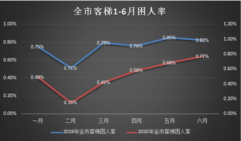 △2020年半年與2019年半年全市客梯困人故障率變化圖