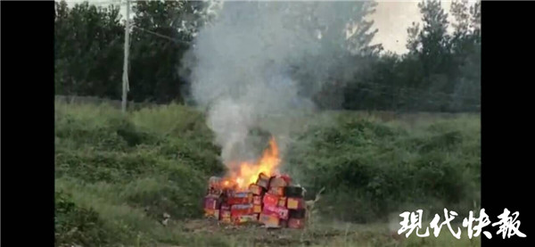 (通訊員 崔文民 周宗江 記者 王曉宇)8月21日上午10時(shí)30分許,連云港市海州區(qū)錦屏劉志洲山一角爆竹聲聲,火花四射,煙霧迷漫。現(xiàn)代快報(bào)記者了解到,這是海州公安分局會(huì)同該區(qū)應(yīng)急局集中銷毀一批私自存儲(chǔ)的假冒煙花爆竹時(shí)場(chǎng)景。30分鐘后,這批500余件涉案價(jià)值近萬(wàn)元的煙花爆竹化成了灰燼。