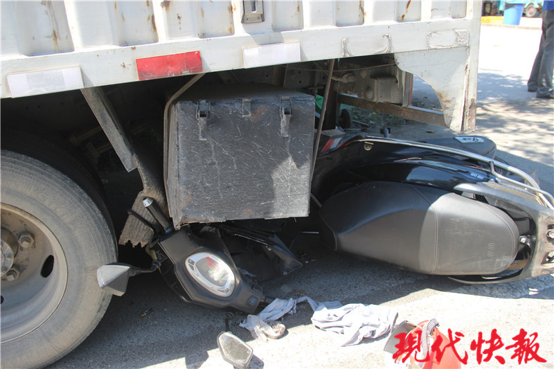 △沈某被連人帶車被撞進(jìn)貨車底下 警方供圖