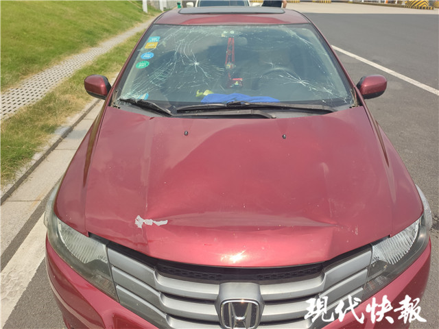 高速上小車(chē)引擎蓋被風(fēng)掀開(kāi) 砸碎擋風(fēng)玻璃