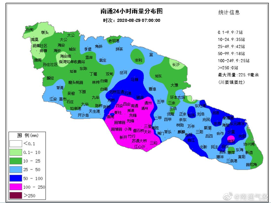 △南通24小時(shí)雨量分布 圖片來(lái)源:@南通市氣象臺(tái)