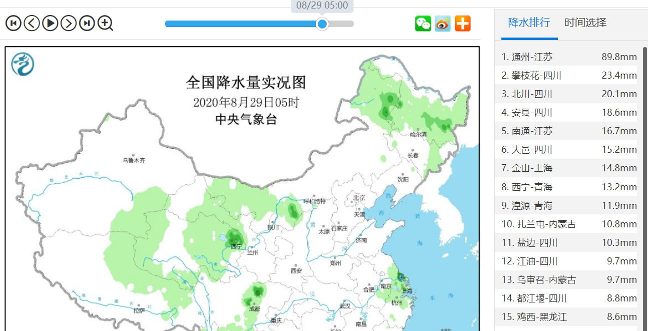 那么,這次的降水量究竟有多驚人呢?現(xiàn)代快報(bào)記者看到,29日凌晨5時(shí)的全國(guó)1小時(shí)降水量排行榜上,南通市通州區(qū)以89.8mm登頂。