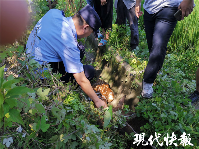 經(jīng)農(nóng)林部門的專業(yè)人員確認,這是一頭梅花鹿,屬于國家一級保護動物,但不知從何而來。目前,這頭鹿已被送往南通森林野生動物園。