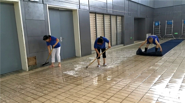 9月4日一早,現(xiàn)代快報(bào)記者來到了位于通甫路的淮安市體育中心游泳館。4名工作人員正在館內(nèi)做清潔,他們把墊子卷起,撒上清潔粉和消毒用品,用刷子清理每一塊地磚,再用水槍沖洗,整個(gè)過程需要4個(gè)小時(shí)。體育中心主任助理賈農(nóng)告訴記者,這是每周一次的大清潔,此外,每天還有日常清潔。消毒劑、消毒片、水循環(huán)儀器等清潔設(shè)備是一筆大開支。