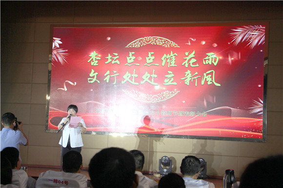 此次大會(huì)共分三個(gè)階段進(jìn)行。首先播放了界牌教育發(fā)展專題片《杏壇點(diǎn)點(diǎn)催花雨,文行處處立新風(fēng)——界牌鎮(zhèn)慶祝全國(guó)第三十六個(gè)教師節(jié)巡禮》,向全體與會(huì)人員展示了界牌新鎮(zhèn)風(fēng)貌、文化依托和全鎮(zhèn)各學(xué)校、幼兒園教育盛況。大會(huì)第二階段,鎮(zhèn)人民政府鎮(zhèn)長(zhǎng)、界牌鎮(zhèn)教委主任周延講話,他從教育成果、隊(duì)伍建設(shè)、資源融合和安全管理等方面,對(duì)全鎮(zhèn)近一年來的教育工作作了全面細(xì)致的分析,展望了未來發(fā)展愿景,同時(shí)向全體教育工作者送上美好祝福。鎮(zhèn)黨委書記崔雯作了熱情洋溢的節(jié)日致辭,她代表鎮(zhèn)黨委、政府向廣大教師致以節(jié)日的問候,表明界牌鎮(zhèn)始終堅(jiān)持把教育工作擺在優(yōu)先發(fā)展的關(guān)鍵位置,大力實(shí)施科教興鎮(zhèn)戰(zhàn)略,推動(dòng)教育事業(yè)與經(jīng)濟(jì)社會(huì)高質(zhì)量發(fā)展同頻共振。第三階段是文藝匯演及頒獎(jiǎng)。在充滿著節(jié)日歡快氣氛的文藝演出過程中,依次穿插進(jìn)行了優(yōu)秀班主任、先進(jìn)教育工作者、“四有”好教師、教育工作先進(jìn)集體頒獎(jiǎng)儀式。王局長(zhǎng)、崔書記、周鎮(zhèn)長(zhǎng)、朱科長(zhǎng)及鎮(zhèn)中學(xué)、中心小學(xué)校長(zhǎng)等領(lǐng)導(dǎo),為獲獎(jiǎng)單位和個(gè)人頒發(fā)了獎(jiǎng)匾、獎(jiǎng)杯。