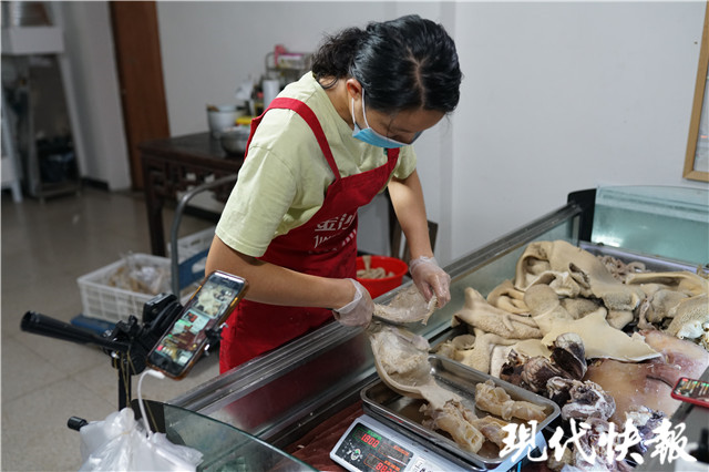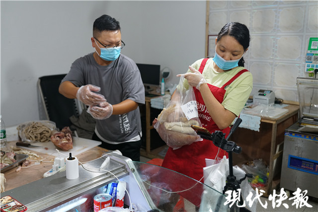 “廣東、福建、北京、湖北等,全國(guó)各地的顧客都有。做生意的老板比較多,一次就買六七十斤。”汪保美告訴現(xiàn)代快報(bào)記者,每次一開直播,直播間內(nèi)都有幾百人觀看,基本上都是鐵粉。店里回頭客也很多,不少顧客都是人托人介紹來(lái)的。私下里,汪保美與經(jīng)常購(gòu)物的顧客結(jié)交成了朋友。“有一名廣東的顧客來(lái)我這里買過(guò)很多次了。有次他要買二十斤的吊龍(牛里脊),直接打電話來(lái),請(qǐng)我切好發(fā)給他,說(shuō)我們家的肉非常新鮮。”汪保美自豪地說(shuō)。