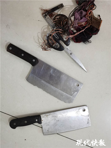 △ 男子隨身攜帶的菜刀和剪刀