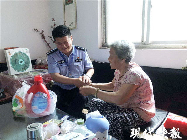 △社區(qū)民警沈衛(wèi)東在和老人聊天