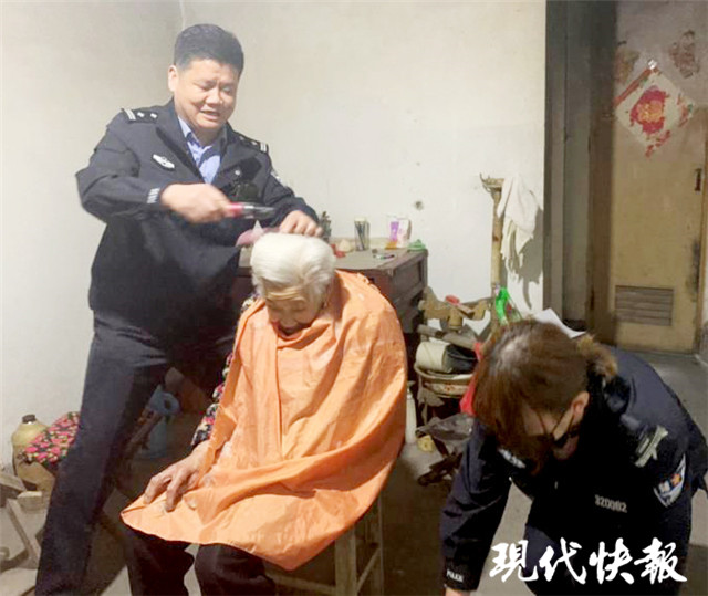 △沈衛(wèi)東和志愿者幫空巢老人理發(fā)