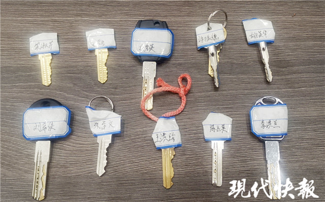 現(xiàn)代快報(bào)記者注意到,這串特殊意義的鑰匙,每一把上都清楚標(biāo)著每位老人的姓名,他們居住的單元樓與門牌號(hào)也被記錄了下來。