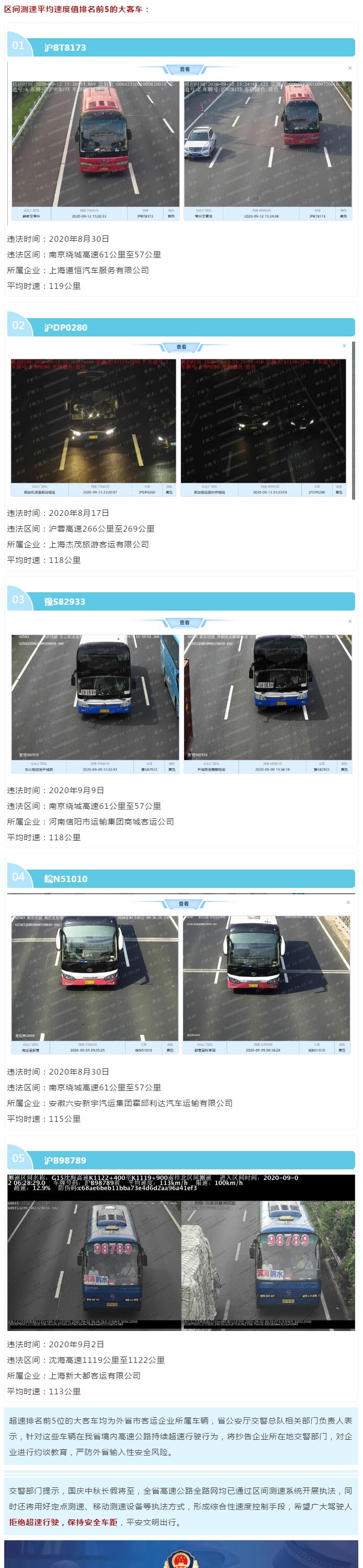 據(jù)悉,超速排名前5位的大客車均為外省市客運企業(yè)所屬車輛。省公安廳交警總隊相關部門負責人表示,針對這些車輛在江蘇省境內(nèi)高速公路持續(xù)超速行駛行為,將抄告企業(yè)所在地交警部門,對企業(yè)進行約談教育,嚴防外省輸入性安全風險。