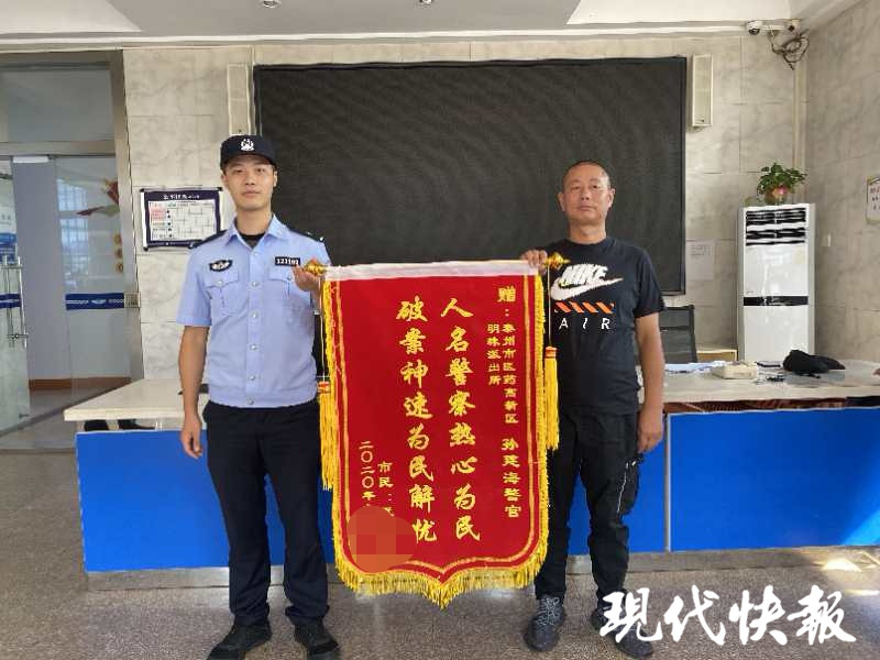 9月26日,失主戴先生將一面寫(xiě)有“人民警察熱心為民,破案神速為民解憂(yōu)”的錦旗送到了泰州醫(yī)藥高新區(qū)明珠派出所,感謝民警幫其找回被盜的現(xiàn)金。