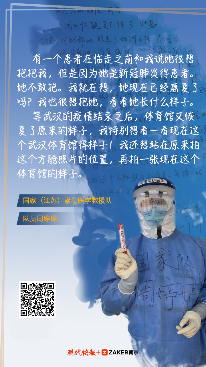 從武漢回來(lái)后,國(guó)家(江蘇)緊急醫(yī)學(xué)救援隊(duì)隊(duì)員周婷婷始終惦記著兩件事:一個(gè)擁抱,和一張合影。
