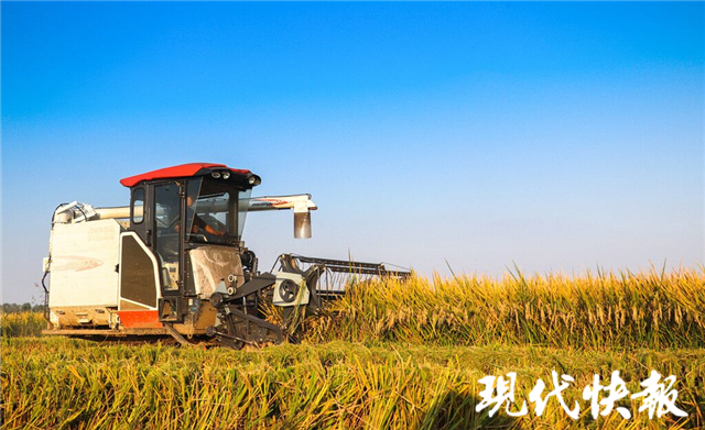 據(jù)了解,今年句容市水稻種植面積約36萬(wàn)畝,目前主要是早熟的雜交水稻陸續(xù)開始收割,而稍遲一點(diǎn)的粳稻也豐收在望,即將成熟進(jìn)入收獲期。為確保秋糧顆粒歸倉(cāng),各地調(diào)集收割機(jī)械搶抓晴好天氣,成熟一塊、收獲一塊,將到手的秋糧搶回來(lái),保障糧食生產(chǎn)安全。